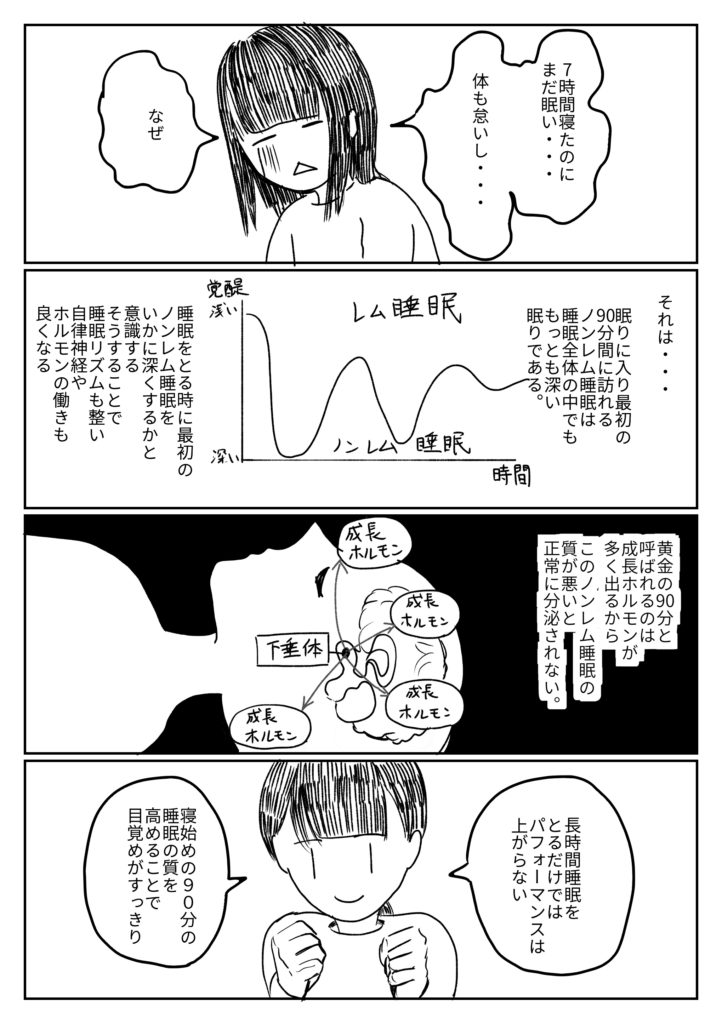 最初のノンレム睡眠をいかに深く眠ることを意識することが重要です。