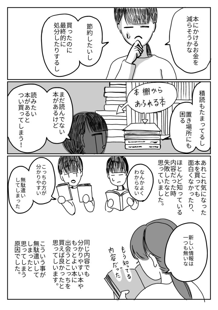 買って読んだはいいけど何回も読み直さないことがあるのでもったいないかなと思ってしまうこともある。