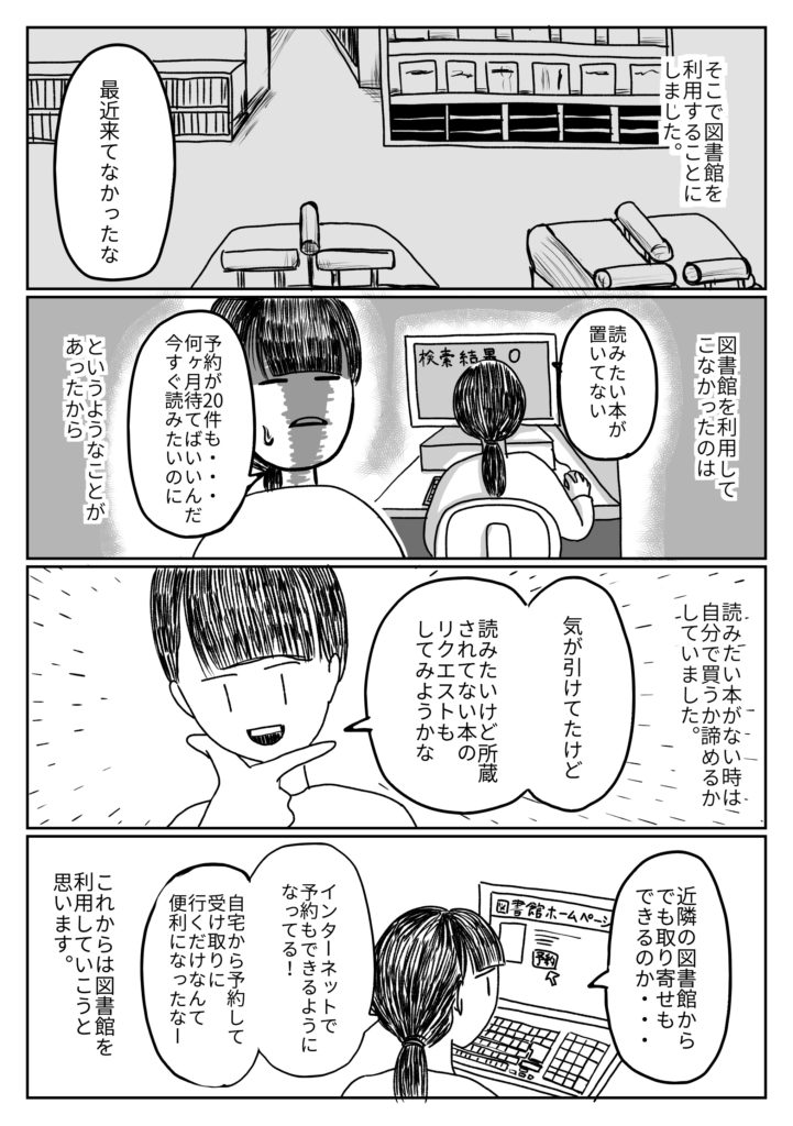 一番近くの図書館が自分が読みたい本がない場合が多かったからです。