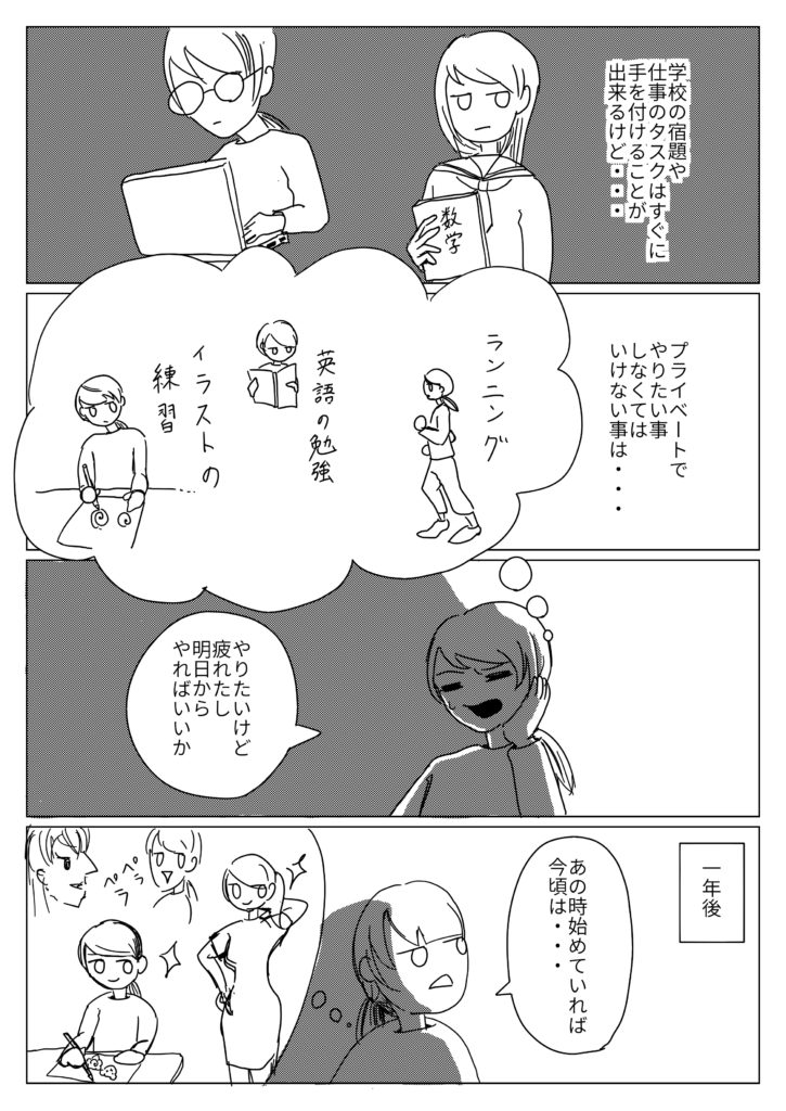 1、2日で途切れたことで自己嫌悪してしまい、やらなくなってしまったこともありました。